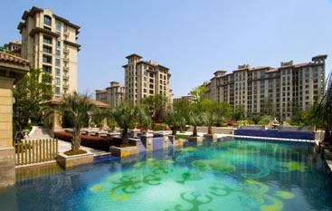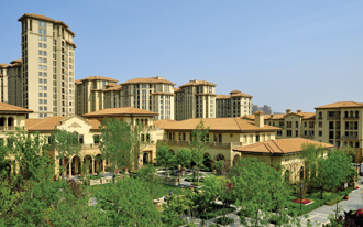 地中海高层公寓系列交通组织实行组团人车分流,车行布置于外围,或者直接从主入口进入地下车库;组团内为步行系统,仅设置消防车道。活动休闲场地沿绿化带散布其中,营造富有活力的社区核心公共空间。会所的室外泳池和庭院景观,结合小区中心公共绿地设计,将人的活动融于其中。